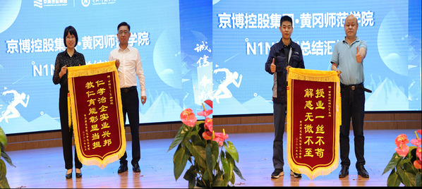 为了感谢京博集团三个月以来对全体师生的教导和关怀,胡志华和田正芳分别向京博N1N融创院和石化炼化G车间授予了锦旗,并祝福京博集团在未来,能继续乘风破浪、展翅高飞!