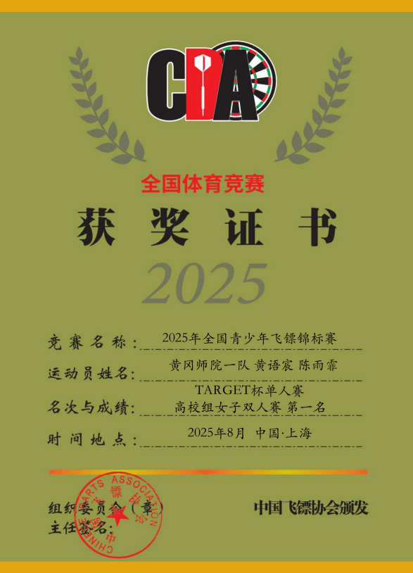 【黄师荣誉】我校学子在2025年全国青少年飞镖锦标赛斩获佳绩